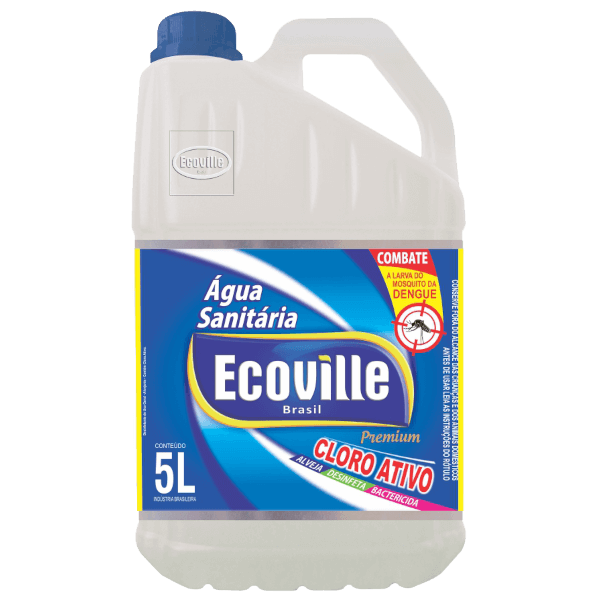 A água sanitária Premium é um alvejante com cloro ativo, ideal para roupas brancas e panos de prato brancos. Possui ação que combate o mosquito da dengue. Disponível em: 5L