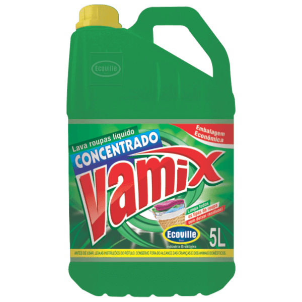 O Lava Roupas Líquido Vamix Concentrado tem a função de lavar todos os tipos de roupas e enxovais, sem deixar resíduos.