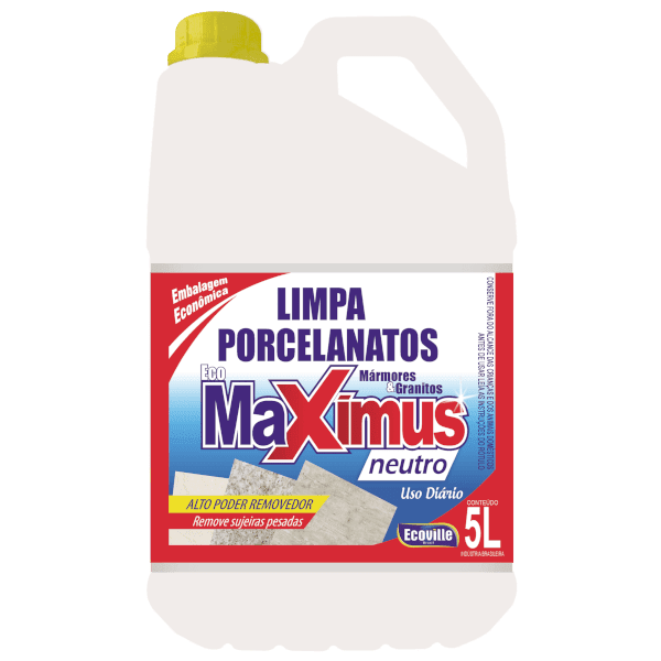 O Limpa Porcelanato Maximus Neutro foi desenvolvido para limpezas diárias de porcelanato, rejunte, granito, mármores e pisos cerâmicos. Disponível em 5L, 2L e 500Ml