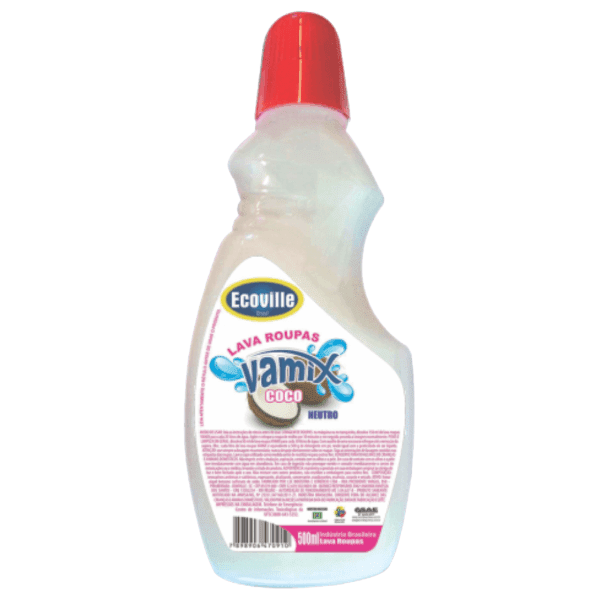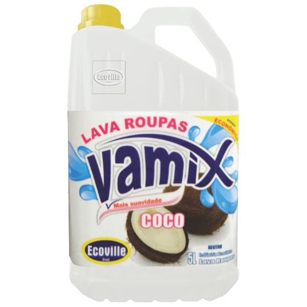 Lava Roupas Líquido Vamix Coco tem a função de lavar roupas delicadas.